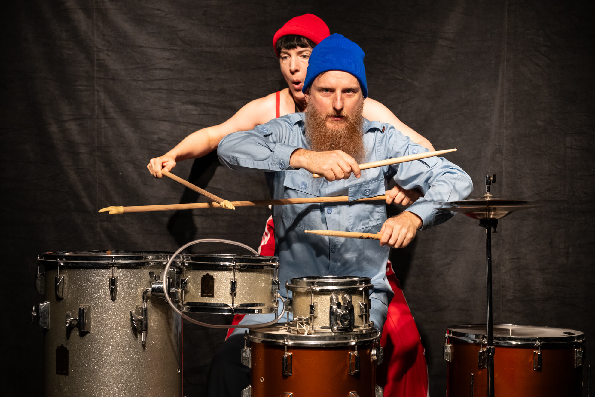 Rouge et Bleu reviennent. Après avoir monté et démonté leur Robot plus de 200 fois à travers la Suisse et la France, ils sont prêts pour de nouvelles expérimentations sonores. Ils sont redescendus dans leur cave et ont dégotté des éléments de vieilles batteries, ainsi que des objets bizarroïdes. Ces trouvailles vont les lancer dans une recherche de composition musicale surprenante et drôle.