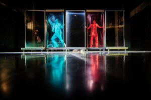 I. ou le complexe du Homard danse l’adolescence, entre l’animalité des corps et la théâtralité des émotions, plongé dans une scénographie métaphore d’un monde numérique. Un spectacle chorégraphique hybride, animé d’une énergie vibrante, jubilatoire, parfois explosive qui nous oblige à repenser la monde d’aujourd’hui, et celui de demain aussi visuel.